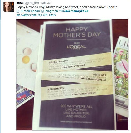Women Tweeted, uploaded photos and videos – all of which was housed on an integrated Youtube Channel. This was also accompanied by national press, and radio ads. We also used our favourite Tweets to create a run of press ads leading up to Mother's Day - which were in turn retweeted by delighted consumers.